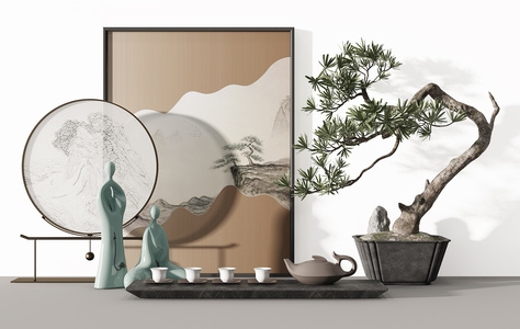 Z33-0708新中式禅意茶具茶壶茶杯松树盆景盆栽人物雕塑摆件饰品