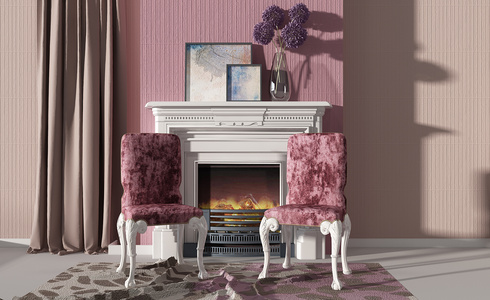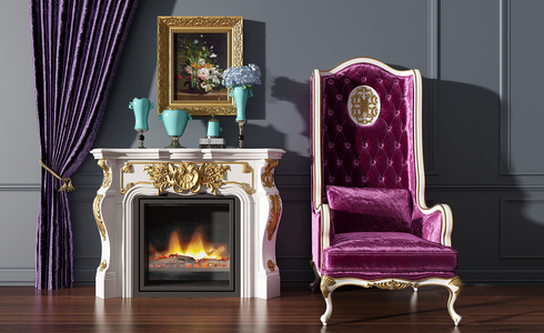 Z05-0708欧式法式壁炉圣诞饰品摆件休闲椅子挂画
