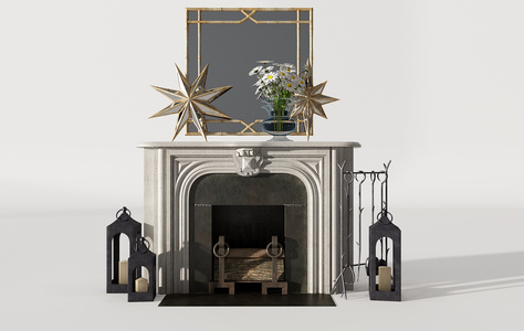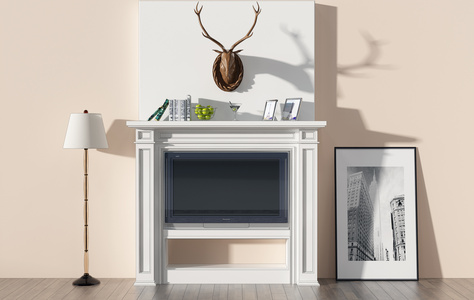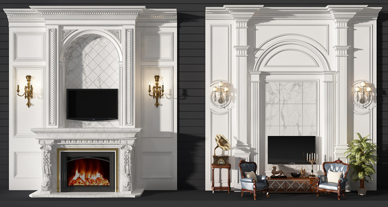 Z03-0708古典欧式法式雕花护墙板罗马柱壁炉画框镜框摆钟电视背景壁炉留声机电视柜