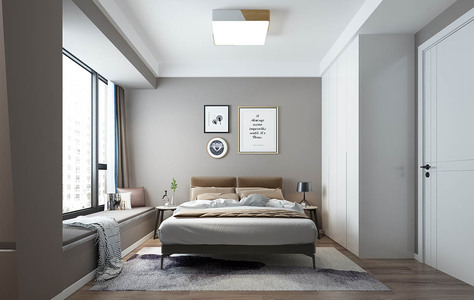 Z55-0411北欧双人床床头柜 台灯挂画花艺飘窗台吸顶灯组合