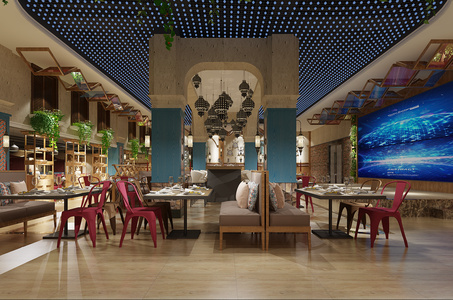 Z03-0701伊斯兰新疆工业风混搭餐厅餐桌椅卡座