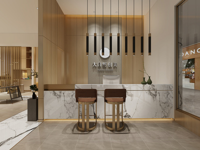 Z02-0621新中式酒店售楼处接待大厅前台