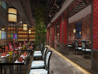Z07-0628混搭新中式风格餐厅餐桌椅藤蔓花格