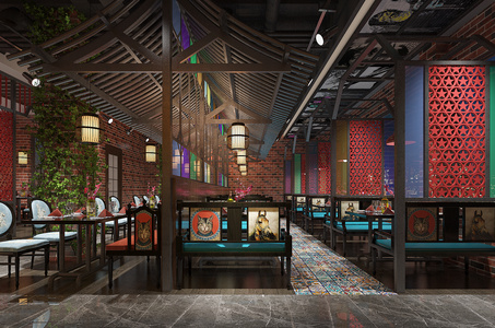 Z05-0628新中式混搭餐厅桌椅舞台宴会厅
