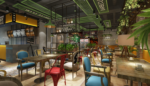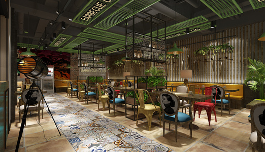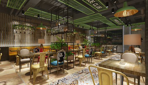 Z12-0628工业风混搭餐厅串吧铁艺吊架鸟笼吊装植物卡座餐桌椅