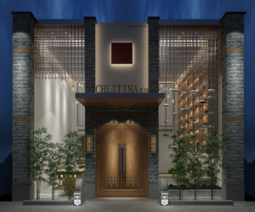 Z05-0624中式茶馆茶楼餐厅门头大门抱鼓石鼓