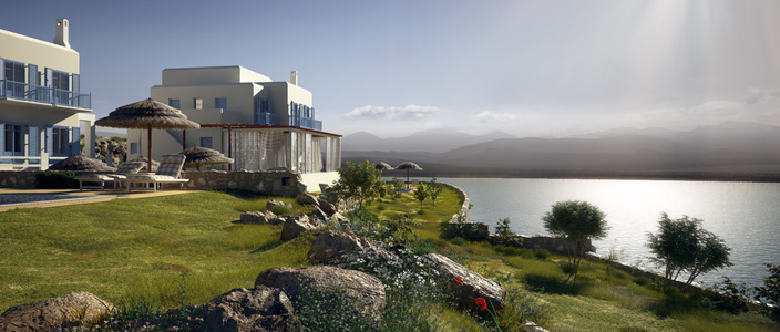 01室外海景房景观植物石头茅草屋子凉亭石头墙 (1)