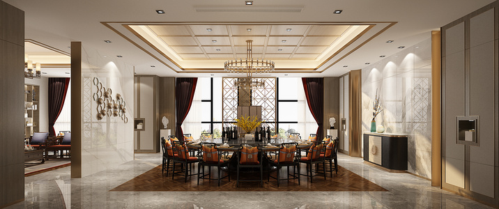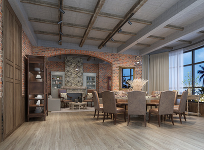 Z06-0626美式餐厅包间圆形餐桌椅子壁炉酒柜