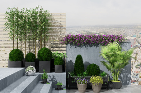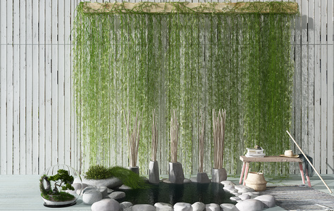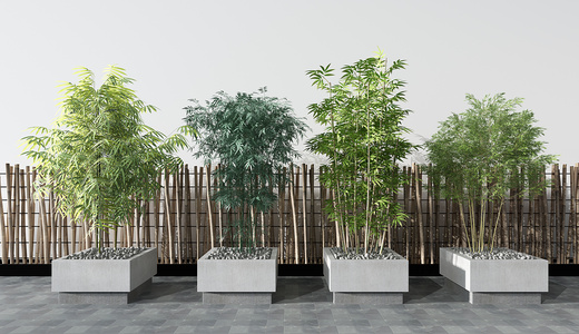 H80-0629植物盆景绿植竹子花池树池篱笆墙围栏栅栏竹杆鹅卵石民宿