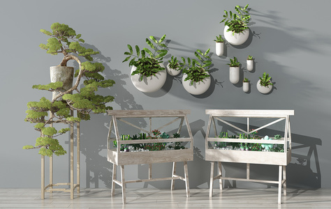 H78-0629景观植物松树盆景花架花店壁挂植物