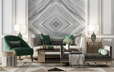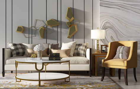 H96-0629新中式简欧式沙发茶几单人椅子茶几靠包台灯几