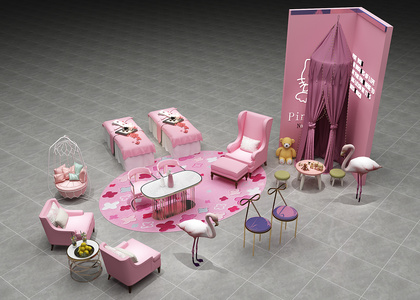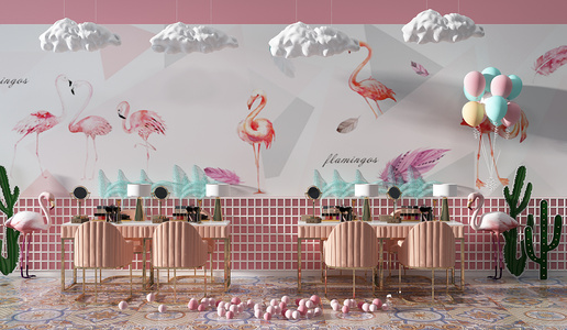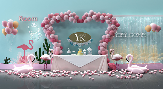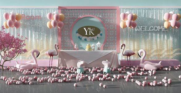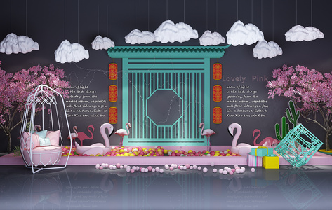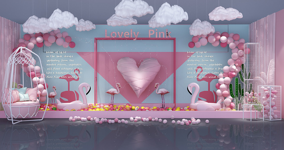 H08-0628现代网红节日婚礼婚庆气球海洋球吊椅火烈鸟美陈背景橱窗拍照打卡