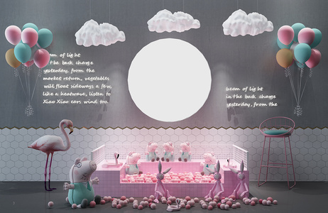 H02-0628现代网红美陈背儿童公主景墙海洋球小猪佩奇气球云朵吊灯火烈鸟