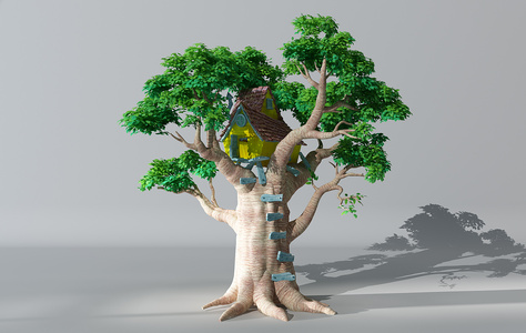 H22-0628半卡通儿童娱乐景观植物大树树屋