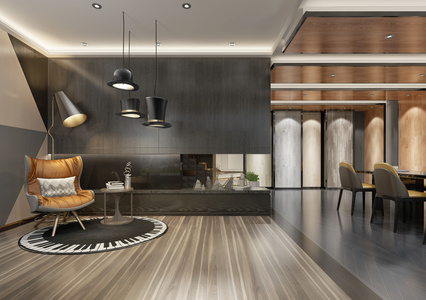 H23-0605现代木地板专卖店休闲洽谈区帽子吊灯休闲椅
