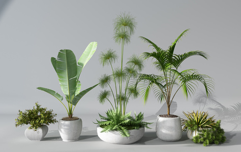 H97-0625植物绿植盆栽花盆花架芭蕉叶