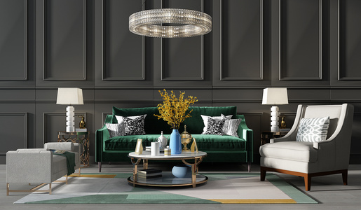 H103-0625简欧式新古典沙发茶几单人沙发沙发墩榻卧榻台灯吊灯