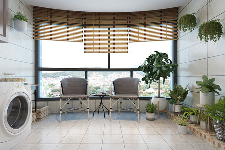 Z03-0730阳台植物吊篮竹帘藤椅休闲椅子