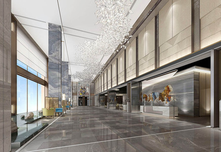 Z01-0419新中式酒店办公大堂大厅前台接待大型水晶吊灯