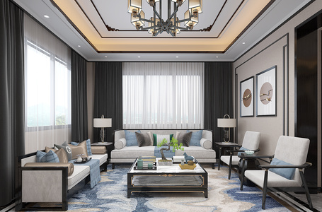 Z21-0620新中式客厅会客厅沙发茶几吊灯摆件