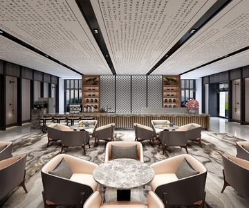 H19-0418现代新中式酒店售楼处水吧台休闲洽谈区椅子
