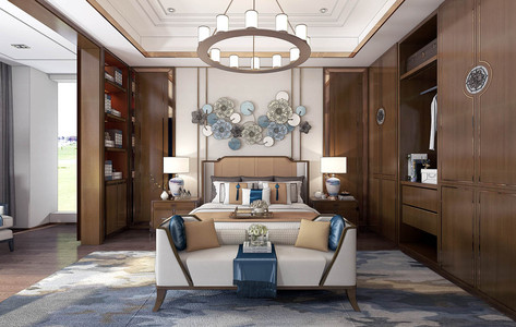 H07-0520新中式卧室床床头柜床榻墙饰挂件