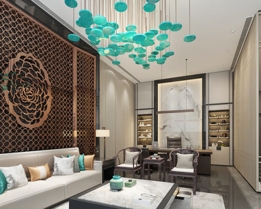Z03-0505新中式总经理办公室办公桌椅班台沙发茶几书柜花格屏风吊灯圈椅