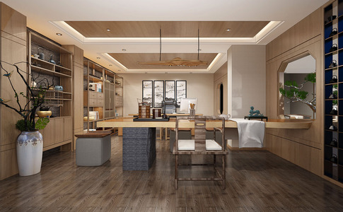 Z10-0505新中式书房茶室茶桌椅茶具陶罐