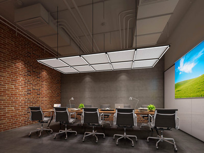 7-21工业风大会议室会议桌金属网吊灯