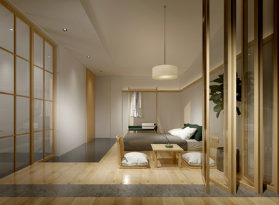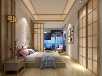 H02-0426日式酒店客房spa美容会所大床房按摩房