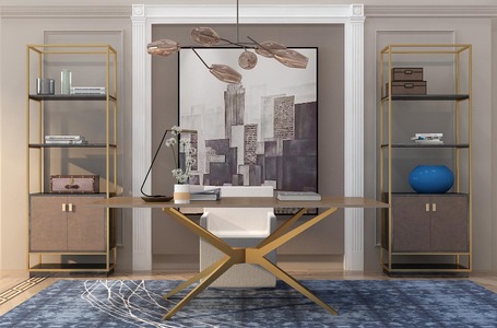Z19-0402现代轻奢简欧式书桌椅金属书架书房