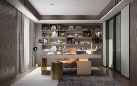 Z21-0402现代轻奢书房书桌椅书柜书籍