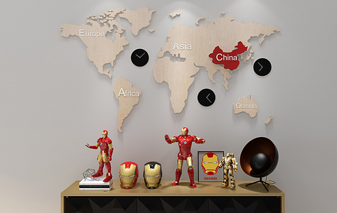 Z30-0215钢铁侠世界地图儿童玩具摆件