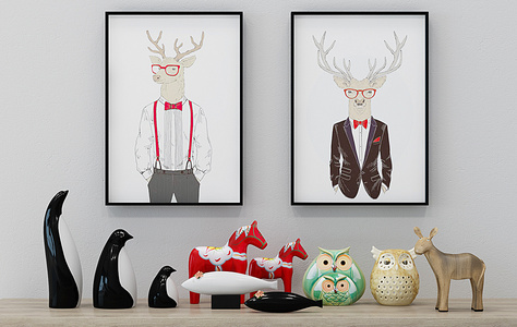 Z02-0219企鹅马动物玩具饰品摆件组合
