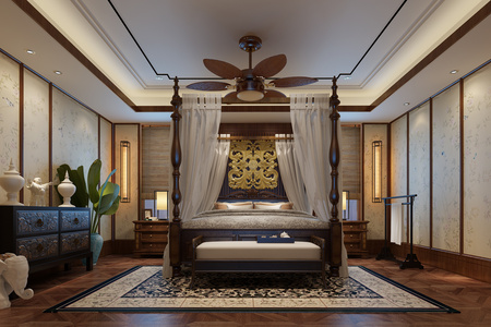 Z05-0614东南泰式亚卧室客房玄关柜边柜风扇灯欧式架子床