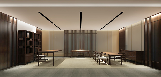 Z12-0605新中式茶室茶桌椅品茶区屋檐庭院