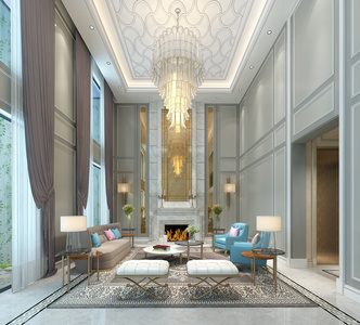 Z09-0605法式别墅客厅沙发茶几吊灯