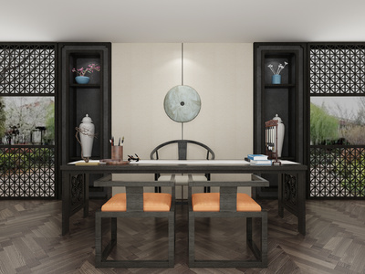 Z05-0605新中式书房书座椅