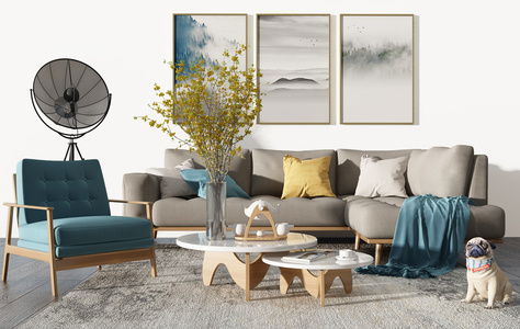 Z11-0530北欧客厅沙发茶几宠物狗花瓶