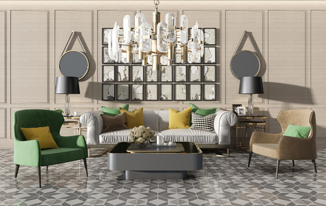 Z01-0530欧式美式客厅沙发茶几挂画休闲椅边几台灯