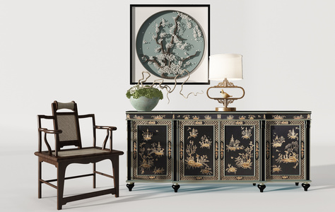 Z23-0528美式欧式新中式漆画玄关柜餐边柜装饰柜椅子立体挂画台灯