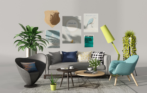 Z25-0528北欧现代沙发茶几休闲椅落地灯组合