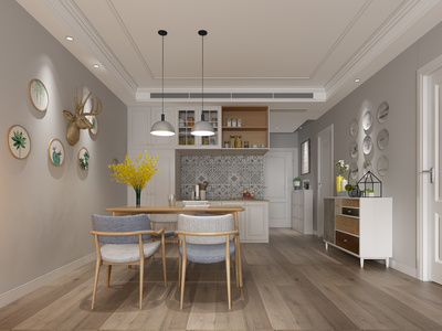 Z04-0527北欧餐厅厨房餐桌椅橱柜