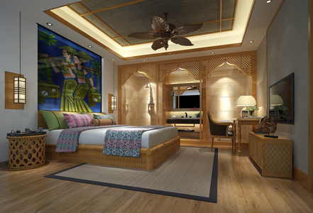 Z01-0525东南亚泰式卧室床百叶帘风扇灯