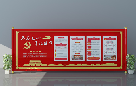 Z16-0517现代党建党组廉政宣传墙展厅展台党徽文化墙连廊