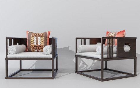 H38-0601新中式单人沙发椅子模型
