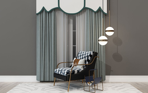 H19-0529后现代单人休闲椅子沙发欧式地中海窗帘