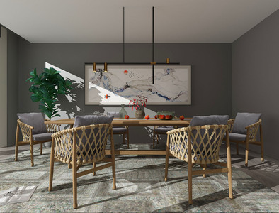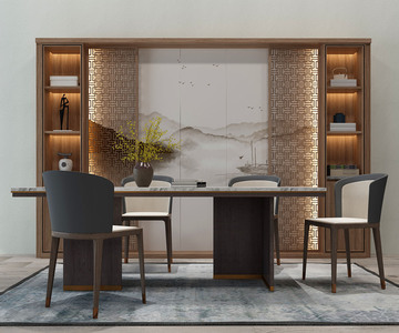 H09-0530新中式餐桌椅装饰柜组合
