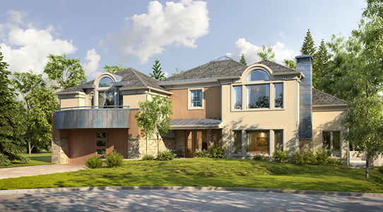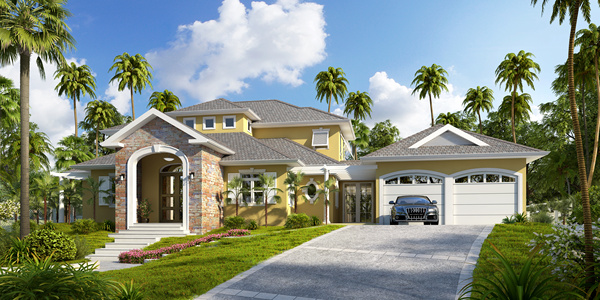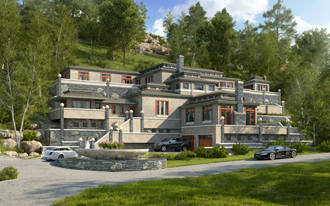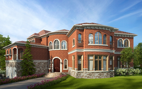H20-0720欧式别墅花丛植物树