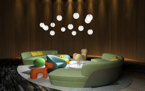 Z05-0722现代异形圆形弧形半圆沙发吊灯公仔儿童座椅组合